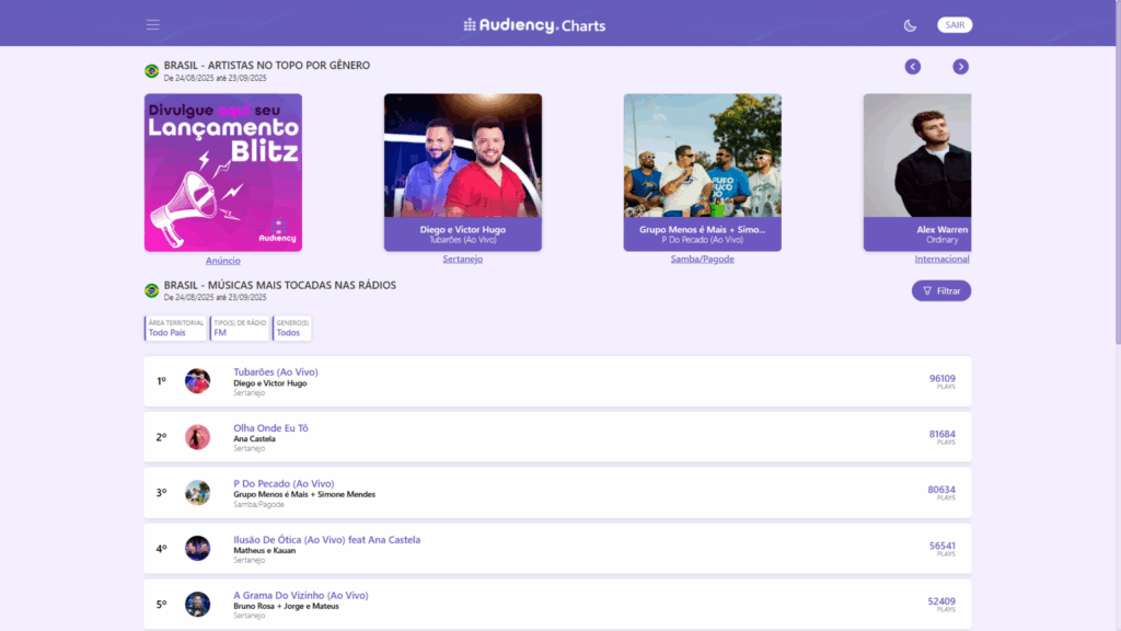 - Inserções em diferentes regiões: escolha praças estratégicas e planeje em quais cidades você quer ganhar tração. Um artista de bailão pode começar pelo interior, enquanto um pop pode mirar capitais.